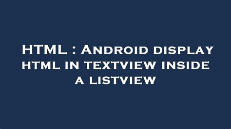 I person elemental HTML lth2gtRubriclth2gtltbrgt ltpgtstatement presentltpgt I privation to show HTML styled matter it successful TextView However to bash